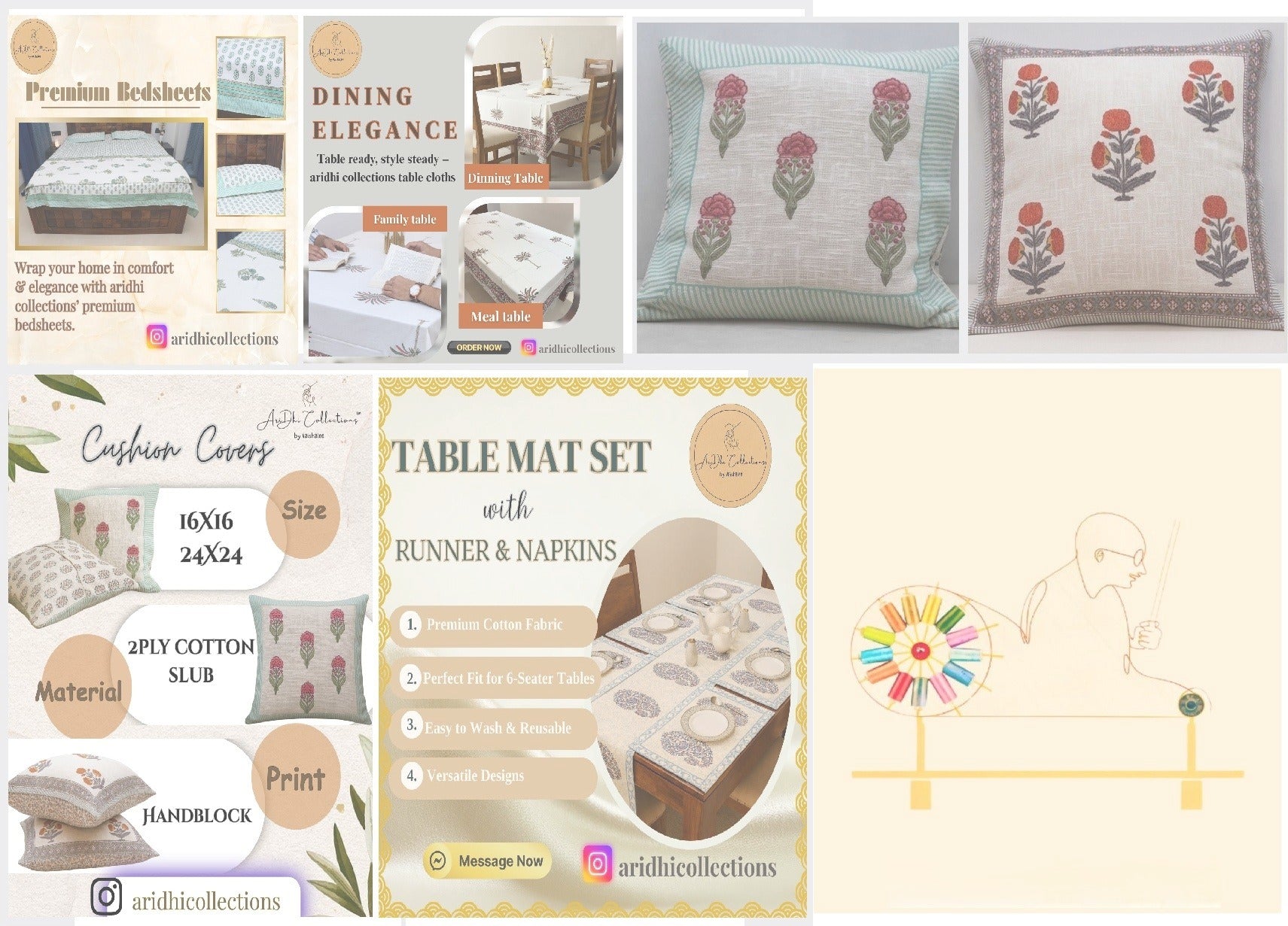 Table Linen, Bedsheets, Cushion Covers, Handwoven Rugs and Carpets